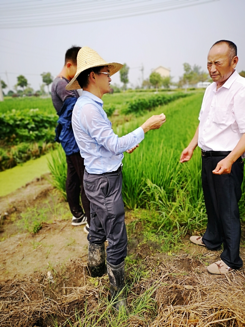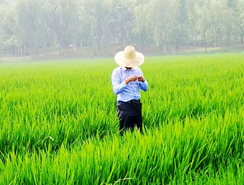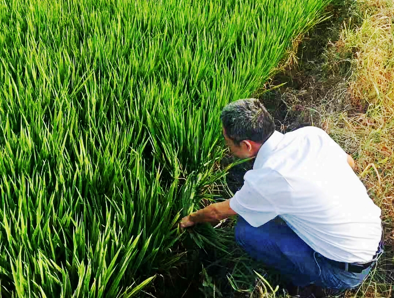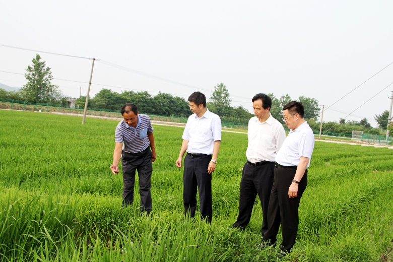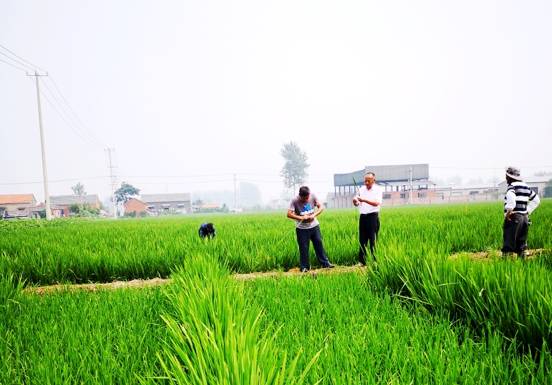 察看雜交粳稻制種田苗情和長(zhǎng)勢(shì)情況