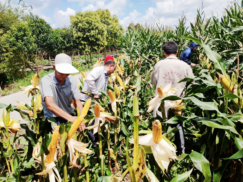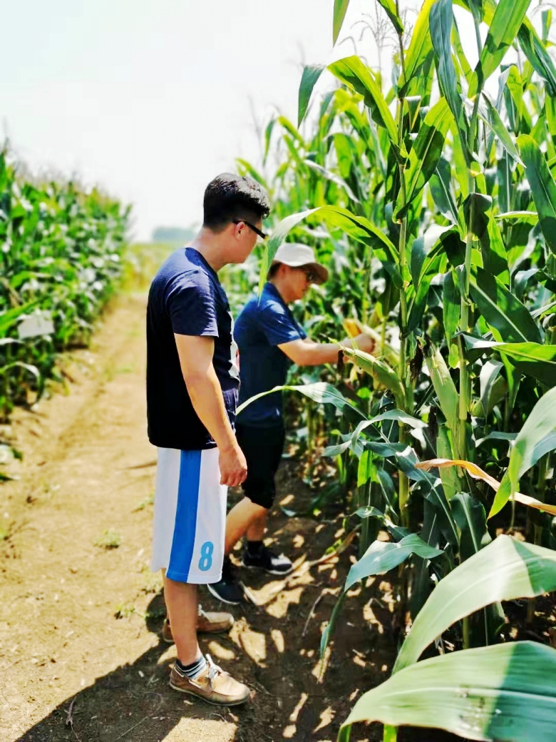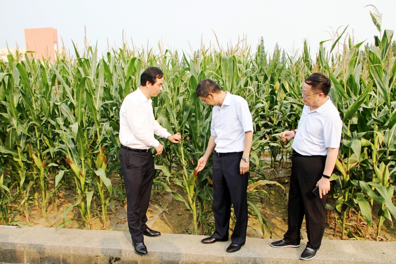 察看雜交水稻、玉米育種田