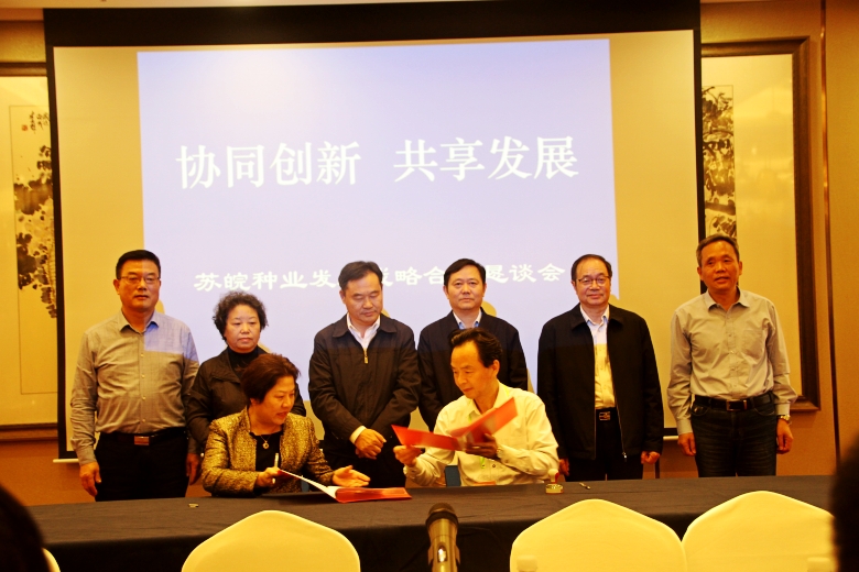 本屆全國(guó)種子雙交會(huì)內(nèi)容豐富,議程緊湊。10月30日下午,公司作為江蘇省種業(yè)協(xié)會(huì)秘書(shū)長(zhǎng)單位,參加了江蘇、安徽兩省種子管理站和種業(yè)協(xié)會(huì)聯(lián)合舉辦的“蘇皖種業(yè)發(fā)展戰(zhàn)略合作懇談會(huì)”。會(huì)上,蔣總作為江蘇省種業(yè)協(xié)會(huì)常務(wù)副會(huì)長(zhǎng)、秘書(shū)長(zhǎng),介紹了江蘇省種業(yè)協(xié)會(huì)工作情況,并簽署了江蘇省種業(yè)協(xié)會(huì)與安徽省種子協(xié)會(huì)的《蘇皖種業(yè)發(fā)展戰(zhàn)略合作框架協(xié)議書(shū)》。