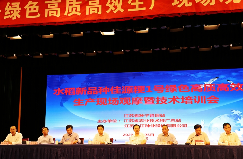 9月25日,公司中熟中粳稻新品種“佳源粳1號”綠色高質(zhì)高效生產(chǎn)現(xiàn)場觀摩培訓(xùn)會在淮安市白馬湖農(nóng)場成功召開。江蘇省人大常委會原副主任俞敬忠,江蘇省農(nóng)業(yè)農(nóng)村廳副廳長蔡恒,江蘇省種子管理站站長何金龍,江蘇省農(nóng)業(yè)技術(shù)推廣總站二級研究員倪玉峰出席會議;蘇北五市農(nóng)業(yè)農(nóng)村局分管局長、種子管理系統(tǒng)、農(nóng)技推廣系統(tǒng)代表,公司淮北地區(qū)經(jīng)銷商代表及種田大戶代表220余人參加會議。農(nóng)業(yè)農(nóng)村廳二級巡視員俞衛(wèi)東主持會議,白馬湖農(nóng)場黨委書記姚春華致歡迎詞?;窗彩形睍洀垏汉透笔虚L肖進(jìn)方會前到賓館看望了參會代表。
