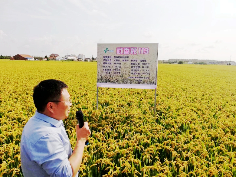 9月29日,公司遲熟中粳稻新品種 “武香粳113”現(xiàn)場觀摩暨座談會在南通中江所在地如東成功召開。江蘇(武進)水稻研究所育種家宋學(xué)堂、陳露,蘇中地區(qū)核心經(jīng)銷商、米業(yè)企業(yè)及部分種田大戶代表參加會議。