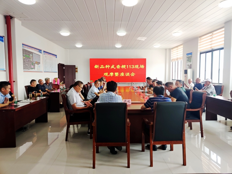 現(xiàn)場觀摩后在南通中江會議室舉行了座談會。市場部經(jīng)理王文主持會議?!拔湎憔?13”主要育成人宋學(xué)堂詳細介紹了品種的選育過程、特征特性和栽培管理注意事項。各地經(jīng)銷商代表交流了該品種今年的示范、宣傳情況,對下一步的推廣前景充滿信心,同時對聯(lián)合推廣提出了很多寶貴建議。
