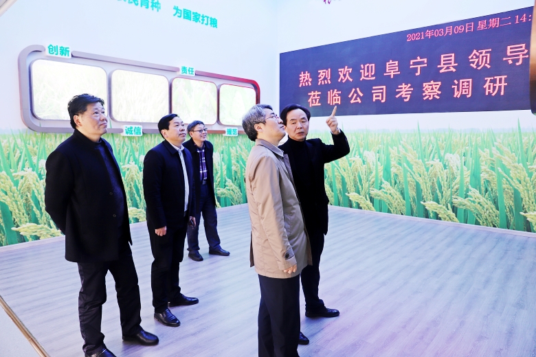 3月9日, 阜寧縣縣委書記徐華明一行蒞臨公司考察調(diào)研。省農(nóng)業(yè)農(nóng)村廳二級巡視員俞衛(wèi)東、省種子管理站站長何金龍出席座談會。