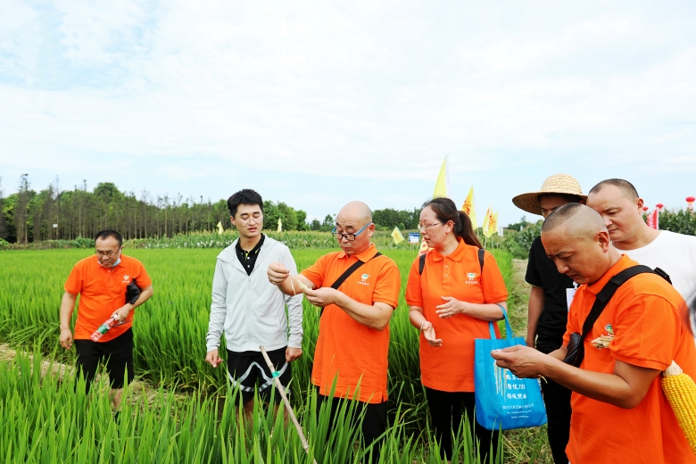 27日,四川六禾匯種業(yè)有限公司組織了品種田間觀(guān)摩會(huì),全體參會(huì)代表到成都新津區(qū)試驗(yàn)基地實(shí)地考察觀(guān)摩品種,公司優(yōu)良雜交水稻品種“贛優(yōu)735”“荃9優(yōu)063”在現(xiàn)場(chǎng)展示。公司川陜渝區(qū)域負(fù)責(zé)人奚修晴,就品種的特征特性、田間管理向與會(huì)代表做了詳細(xì)的介紹。參會(huì)代表們從品種的株葉形態(tài)、分蘗性、抗病性等多方面考察“贛優(yōu)735”“荃9優(yōu)063”的田間表現(xiàn)后,紛紛表示這兩個(gè)品種不僅易管理,產(chǎn)量也很高,對(duì)接下來(lái)的品種推廣信心倍增。