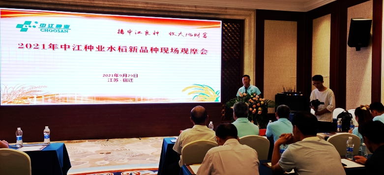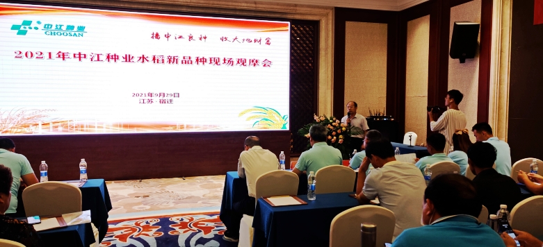 喜迎國(guó)慶,又逢稻熟豐登季。最后,公司副總經(jīng)理凌兆鳳以“中江種業(yè) 未來(lái)可期”為題作總結(jié)講話?!澳暇?6”和“佳源粳1號(hào)”是公司未來(lái)幾年在蘇北地區(qū)的主推水稻品種?!澳暇?6”是目前南粳系列審定品種中唯一一個(gè)達(dá)到國(guó)標(biāo)三級(jí)米的優(yōu)質(zhì)米品種?!凹言淳?號(hào)”是高產(chǎn)穩(wěn)產(chǎn)、抗性強(qiáng),好種好收好賣糧的品種。通過(guò)與各位核心經(jīng)銷商的緊密合作,相信這兩個(gè)品種會(huì)憑借自身的突出優(yōu)點(diǎn)在淮北市場(chǎng)創(chuàng)造輝煌。并表示后續(xù)會(huì)以“種+糧”的模式,對(duì)公司所銷品種實(shí)行訂單收購(gòu),為種植大戶提供一條龍服務(wù),解決其后顧之憂。