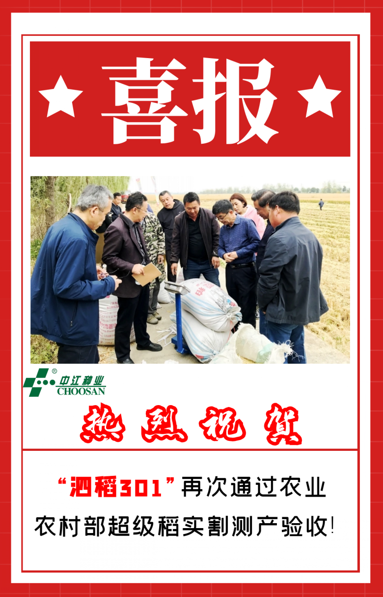 在測產(chǎn)驗收現(xiàn)場,江蘇中江沃達豐種業(yè)常務(wù)副總經(jīng)理馬家龍說:“超級稻推廣對國家糧食安全意義重大,此次我公司泗稻301再次通過超級稻田間測產(chǎn)驗收,證明泗稻301不僅是一個優(yōu)質(zhì)稻品種,更具備極大的豐產(chǎn)潛力。今后,我們將進一步加大該品種的示范推廣面積,做好配套技術(shù)服務(wù),為保障國家糧食安全、促進水稻供給側(cè)結(jié)構(gòu)性改革和鄉(xiāng)村振興貢獻中江力量”。