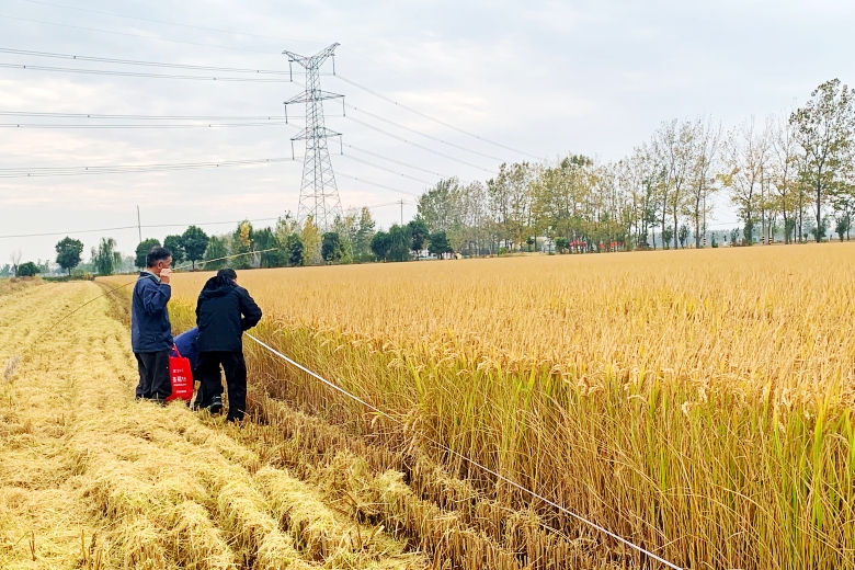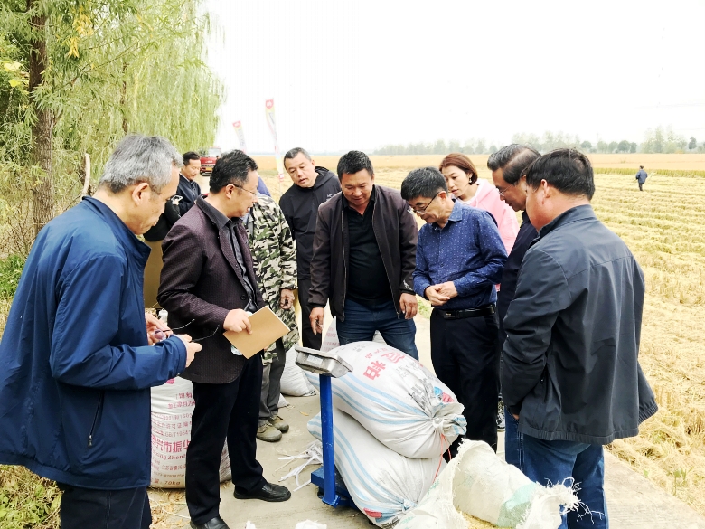 10月30日,由農(nóng)業(yè)農(nóng)村部全國農(nóng)技推廣服務(wù)中心組織專家組,赴宿遷市泗洪縣石集鄉(xiāng)毛山村,對江蘇省農(nóng)業(yè)科學(xué)院宿遷農(nóng)科所和江蘇中江沃達豐種業(yè)科技有限公司申報超級稻認定的泗稻301百畝高產(chǎn)示范方進行現(xiàn)場實收測產(chǎn)。測產(chǎn)專家組在對示范方進行整體考察評估后,隨機抽取3處田塊,進行現(xiàn)場機收測產(chǎn)。經(jīng)過丈量面積、清機后機收、水分測量、過磅稱重、水分折算等環(huán)節(jié),最終得出泗稻301實收畝產(chǎn)781.9公斤(水分按14.5%計算)。專家組一致認為,今年7-8月份江蘇省水稻幼穗分化期及抽穗揚花期遭遇有氣象記錄以來極端高溫干旱氣候,10月上中旬又連續(xù)兩次遭受低溫冷害影響等諸多不利氣候條件,泗稻301仍然實現(xiàn)了大面積增產(chǎn),實屬不易。