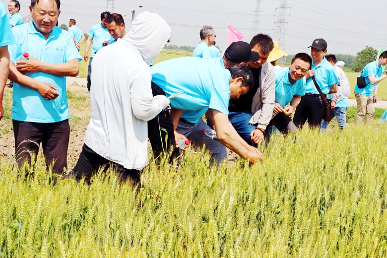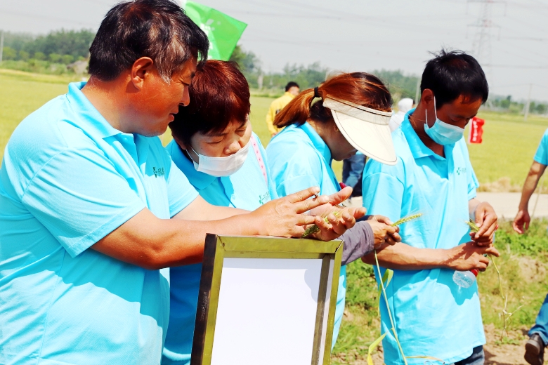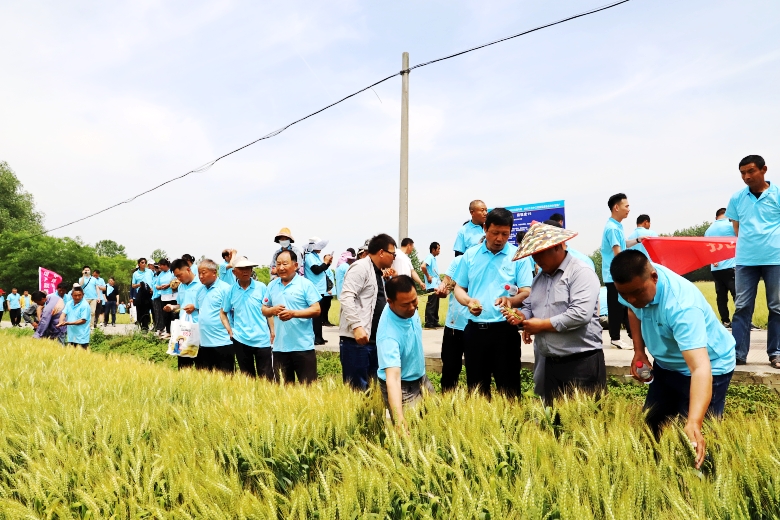上午,參會代表先后觀摩了位于程橋街道金莊基地、大李村的“揚(yáng)輻麥15”、“寧麥資958”千畝示范方,示范方內(nèi),田間長勢旺盛,穗大粒重,顆粒飽滿,得到了與會人員的一致好評。田間觀摩結(jié)束后,各縣市經(jīng)銷商、種植大戶代表紛紛在田間留下了珍貴的合影。