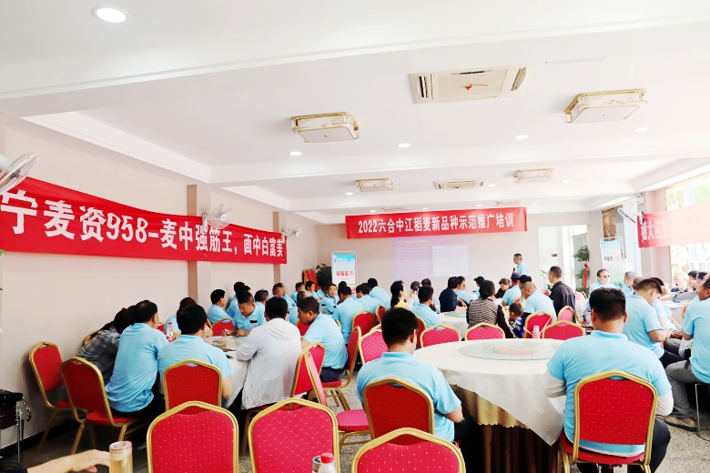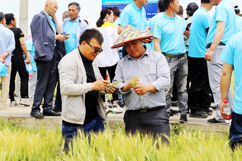 5月16日,公司在六合區(qū)程橋街道金莊基地順利舉辦“2022六合中江優(yōu)質(zhì)稻麥新品種示范推廣”觀摩活動(dòng)。來自六合區(qū)的種子經(jīng)銷商及種植大戶代表近300人參加會議;公司副總經(jīng)理凌兆鳳、劉永健,總經(jīng)理助理王文及水稻部全體人員參加會議。