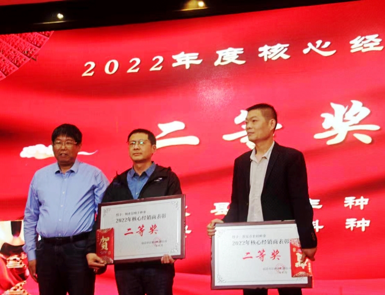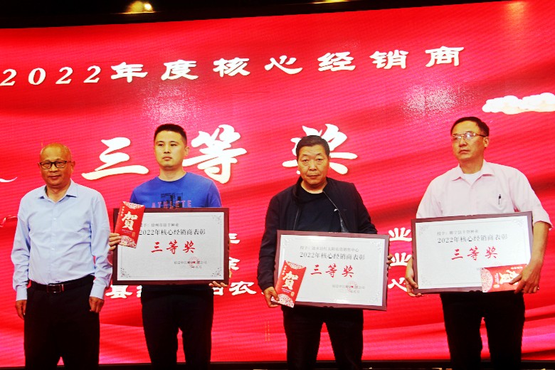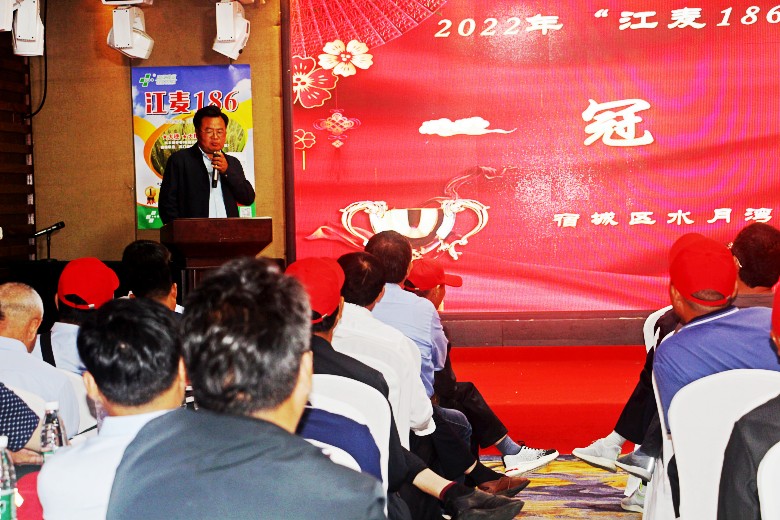 會上對2022年度核心經(jīng)銷商、“江麥186”高產(chǎn)競賽獲獎單位進行了頒獎。經(jīng)銷商代表東海種子大世界陳總、種田大戶代表宿城區(qū)水月灣家庭農(nóng)場臧老板,分別就近三年江麥186的推廣經(jīng)驗以及近年來種植江麥186如何獲得高產(chǎn)的心得進行了分享。