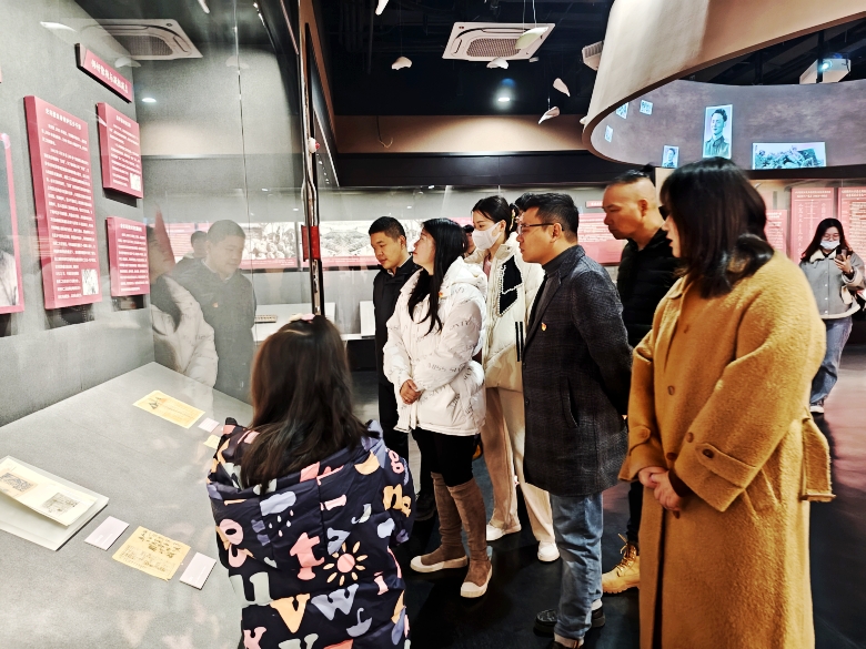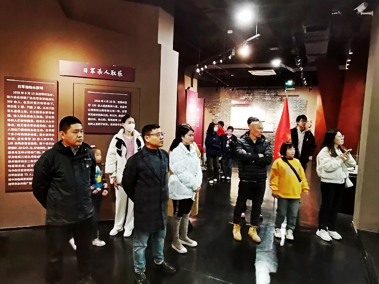 隨后,來到毗鄰“竹鎮(zhèn)市抗日民主政府”舊址的“六合抗日斗爭展覽館”,通過圖文展示、實物展品、雕塑裝置、多媒體影像、數(shù)字藝術(shù)場景還原等形式,展現(xiàn)了六合從日軍侵華到新時代發(fā)展的歷史圖景。黨員們在這里邊走邊看、邊聽邊議,緬懷革命仁人志士,感慨幸福生活的來之不易。