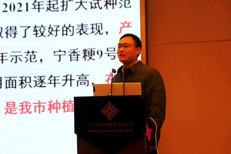江蘇中禾種業(yè)有限公司副總經(jīng)理黃慧明介紹公司近幾年在寧香粳9號(hào)品種推廣,產(chǎn)品銷售取得的相應(yīng)成果以及后續(xù)推廣計(jì)劃。