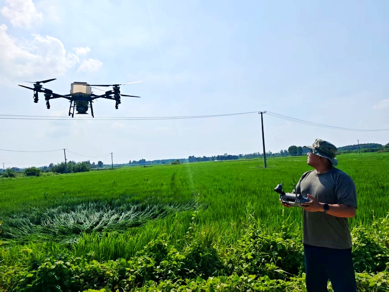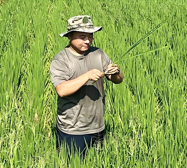 在金莊智慧農(nóng)業(yè)生產(chǎn)示范基地,陳光主要負(fù)責(zé)水稻、小麥等主要糧食作物的技術(shù)與生產(chǎn)管理,成為科技賦能農(nóng)業(yè)的積極實(shí)踐者。他的工作核心聚焦于科技創(chuàng)新與傳統(tǒng)農(nóng)藝的融合,他是無(wú)人機(jī)飛防植?!凹獗?,熟練掌握農(nóng)業(yè)無(wú)人機(jī)操作技術(shù),承擔(dān)基地大面積作物的精準(zhǔn)植保任務(wù)。從方案制定、藥劑配比、航線規(guī)劃,到現(xiàn)場(chǎng)飛行操作、效果評(píng)估及設(shè)備維護(hù),他全程負(fù)責(zé),顯著提升了植保效率和精準(zhǔn)度,有效降低了農(nóng)藥使用量和人工成本,為基地的農(nóng)業(yè)生產(chǎn)節(jié)省了大量資源,提高了經(jīng)濟(jì)效益。他也是作物全周期“管理員”,全面負(fù)責(zé)指定區(qū)域水稻、小麥的全生育期田間管理。從種植計(jì)劃落實(shí)、品種布局,到播種移栽指導(dǎo)、生育進(jìn)程監(jiān)控、群體結(jié)構(gòu)調(diào)控,再到關(guān)鍵生育期農(nóng)藝措施的制定與執(zhí)行,他一絲不茍,確保作物健康生長(zhǎng),為高產(chǎn)穩(wěn)產(chǎn)奠定堅(jiān)實(shí)基礎(chǔ)。他還是水肥精準(zhǔn)“調(diào)控師”,依據(jù)科學(xué)規(guī)律,制定并實(shí)施精準(zhǔn)的灌溉與施肥方案。他密切關(guān)注土壤墑情、養(yǎng)分狀況及天氣變化,負(fù)責(zé)灌溉系統(tǒng)維護(hù),積極應(yīng)用水肥一體化技術(shù),優(yōu)化水肥資源利用效率,保障作物均衡營(yíng)養(yǎng),切實(shí)提升糧食品質(zhì)與產(chǎn)量。