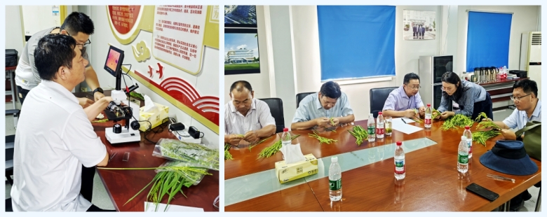 鑒定過程中,專家組深入田間種植現(xiàn)場,對“盈S”和“篁100A”的特征特性、田間純度、開花習(xí)性及配組表現(xiàn)等關(guān)鍵性狀進行了綜合考察,取樣調(diào)查了不育系的花粉育性和套袋自交結(jié)實情況,查閱相關(guān)資料并進行了質(zhì)詢。經(jīng)充分研討,專家組一致認為:這兩個不育系綜合性狀優(yōu)良,不育性穩(wěn)定,開花習(xí)性好,異交結(jié)實率高,配組優(yōu)勢明顯,具備良好的應(yīng)用前景,一致同意通過現(xiàn)場技術(shù)鑒定。