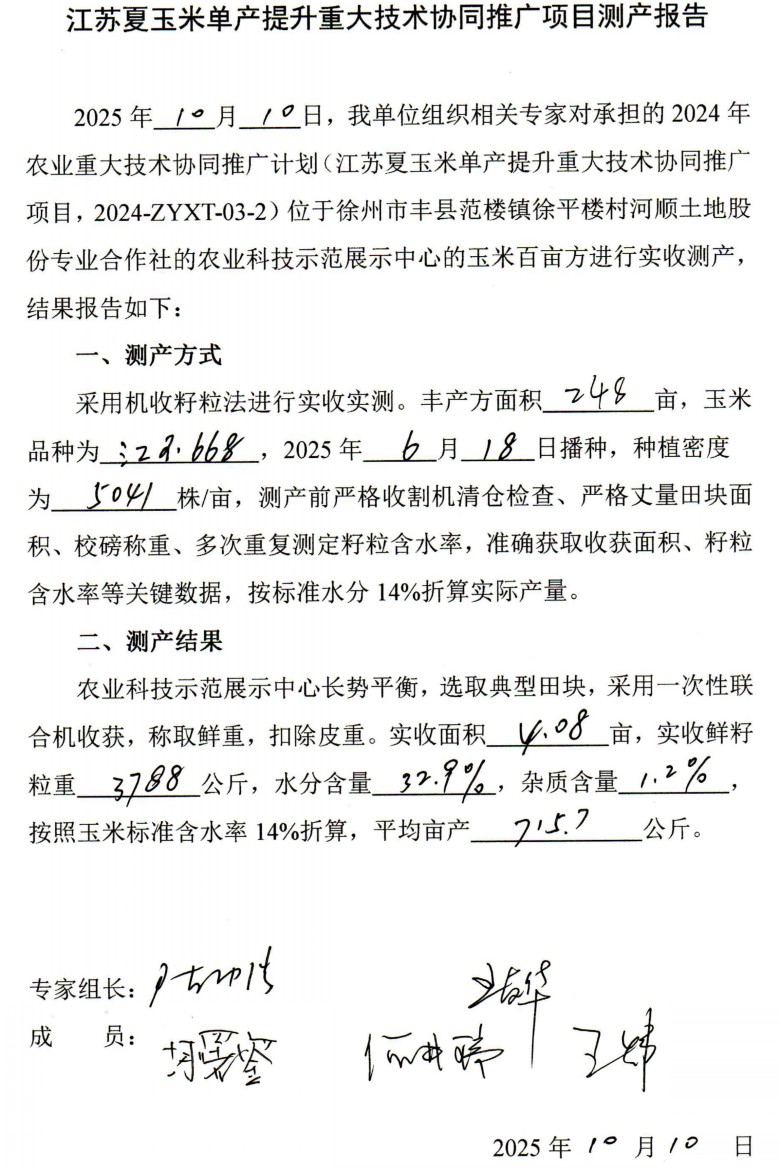 經(jīng)省、市專家組成的測產(chǎn)組現(xiàn)場實(shí)收測產(chǎn),“江玉668”畝產(chǎn)達(dá)到715.7公斤。與會專家一致認(rèn)為,在氣候條件整體不利的年份取得這一產(chǎn)量成績實(shí)屬不易,充分肯定了該品種的穩(wěn)定性與推廣價值。